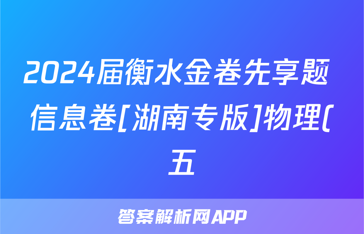 2024届衡水金卷先享题 信息卷[湖南专版]物理(五)5试题正在持续更新,目前2026天舟高考答案网为大家整理了相关试题及答案,供大家查缺补漏,高效提升成绩。