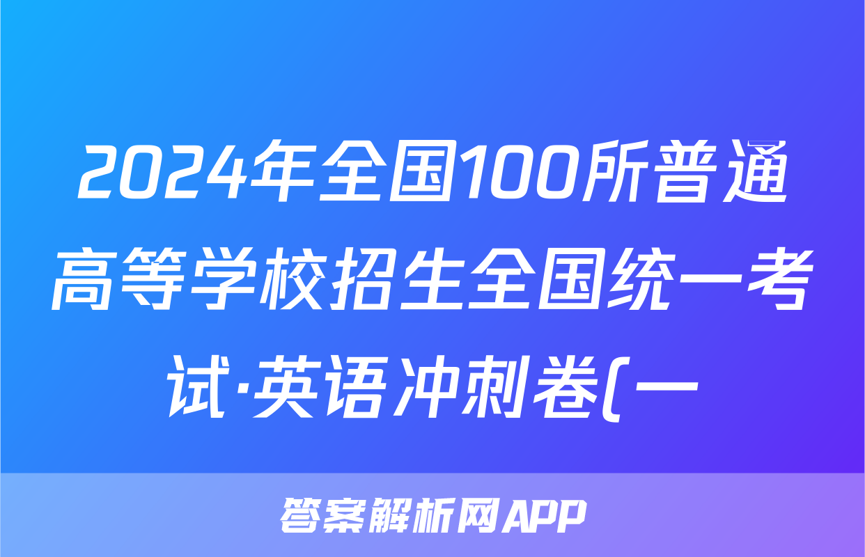 2024年全国100所普通高等学校招生全国统一考试·英语冲刺卷(一)1[24·(新高考)CCJ·英语·Y]答案正在持续更新,目前2026天舟高考答案网为大家整理了相关试题及答案,供大家查缺补漏,高效提升成绩。