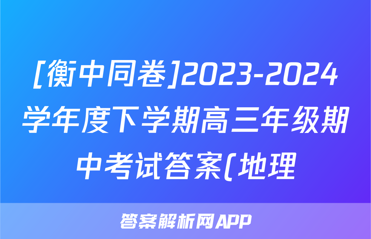 [衡中同卷]2023-2024学年度下学期高三年级期中考试答案(地理)正在持续更新,目前2026天舟高考答案网为大家整理了相关试题及答案,供大家查缺补漏,高效提升成绩。