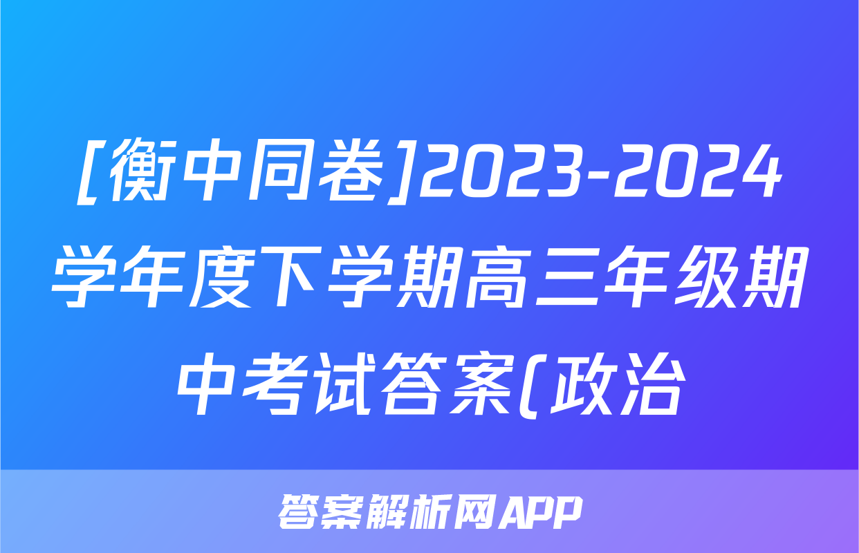 [衡中同卷]2023-2024学年度下学期高三年级期中考试答案(政治)正在持续更新,目前2026天舟高考答案网为大家整理了相关试题及答案,供大家查缺补漏,高效提升成绩。