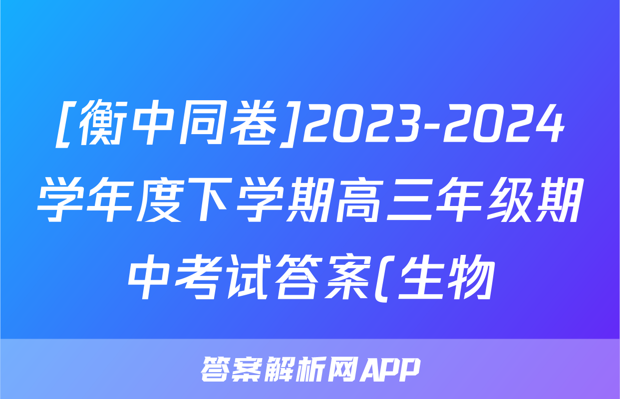 [衡中同卷]2023-2024学年度下学期高三年级期中考试答案(生物)正在持续更新,目前2026天舟高考答案网为大家整理了相关试题及答案,供大家查缺补漏,高效提升成绩。