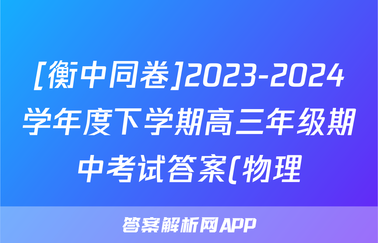 [衡中同卷]2023-2024学年度下学期高三年级期中考试答案(物理)正在持续更新,目前2026天舟高考答案网为大家整理了相关试题及答案,供大家查缺补漏,高效提升成绩。
