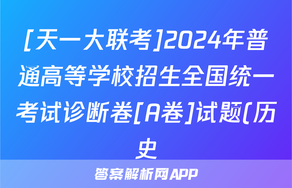 [天一大联考]2024年普通高等学校招生全国统一考试诊断卷[A卷]试题(历史)正在持续更新,目前2026天舟高考答案网为大家整理了相关试题及答案,供大家查缺补漏,高效提升成绩。