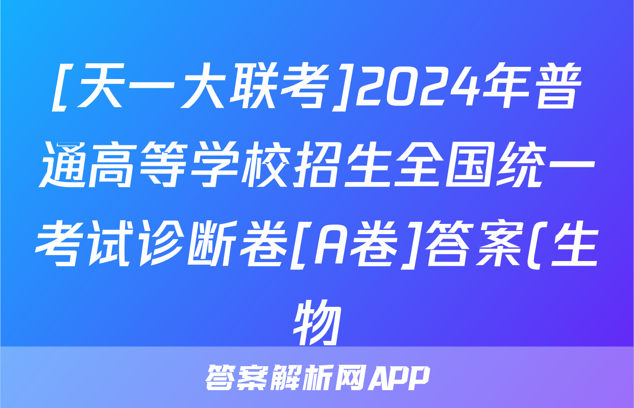 [天一大联考]2024年普通高等学校招生全国统一考试诊断卷[A卷]答案(生物)正在持续更新,目前2026天舟高考答案网为大家整理了相关试题及答案,供大家查缺补漏,高效提升成绩。