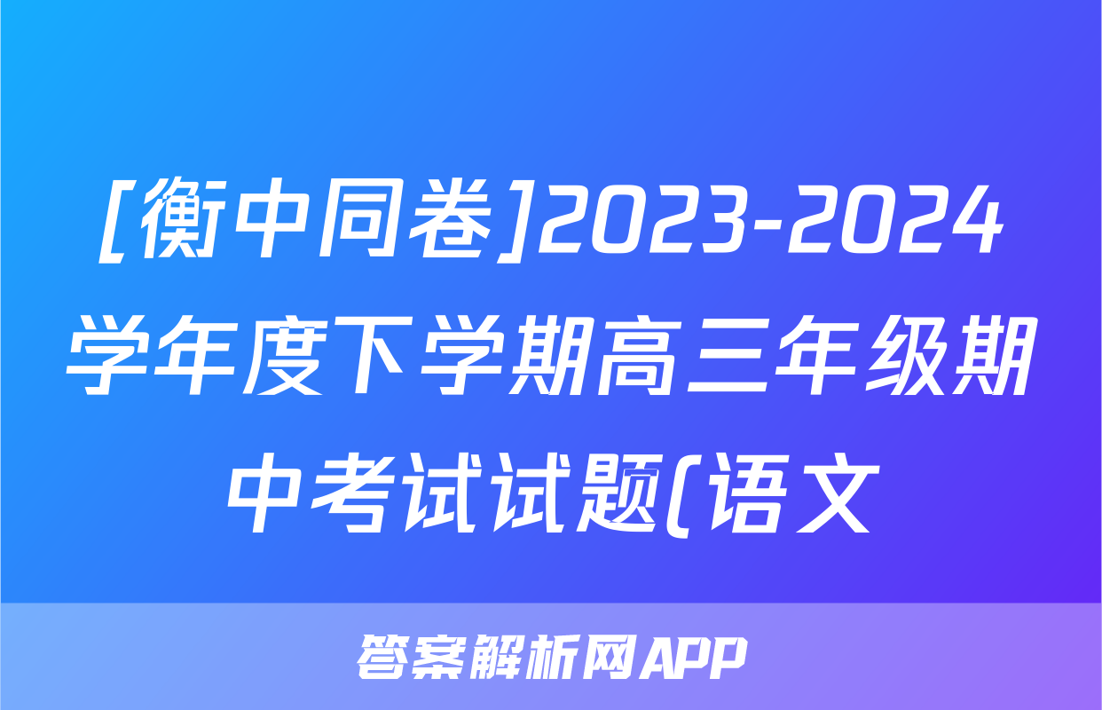 [衡中同卷]2023-2024学年度下学期高三年级期中考试试题(语文)正在持续更新,目前2026天舟高考答案网为大家整理了相关试题及答案,供大家查缺补漏,高效提升成绩。