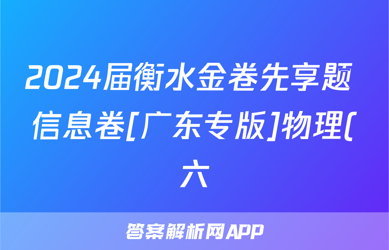 2024届衡水金卷先享题 信息卷[广东专版]物理(六)6答案正在持续更新,目前2026天舟高考答案网为大家整理了相关试题及答案,供大家查缺补漏,高效提升成绩。