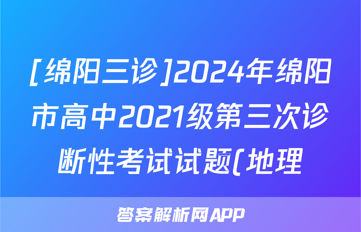 [绵阳三诊]2024年绵阳市高中2021级第三次诊断性考试试题(地理)正在持续更新,目前2026天舟高考答案网为大家整理了相关试题及答案,供大家查缺补漏,高效提升成绩。