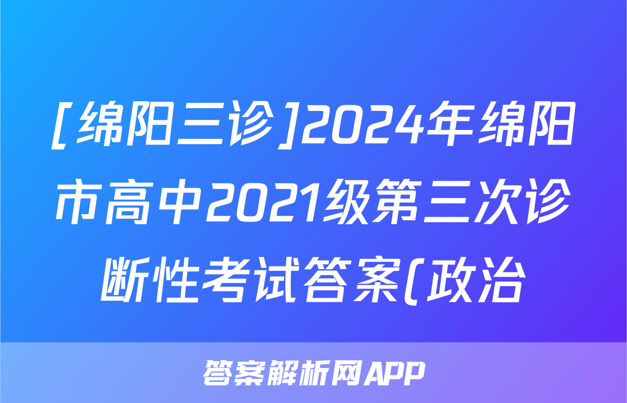 [绵阳三诊]2024年绵阳市高中2021级第三次诊断性考试答案(政治)正在持续更新,目前2026天舟高考答案网为大家整理了相关试题及答案,供大家查缺补漏,高效提升成绩。