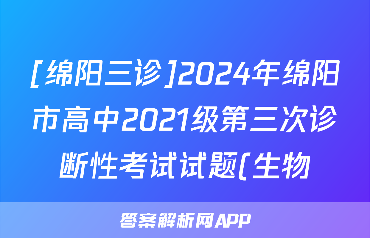 [绵阳三诊]2024年绵阳市高中2021级第三次诊断性考试试题(生物)正在持续更新,目前2026天舟高考答案网为大家整理了相关试题及答案,供大家查缺补漏,高效提升成绩。