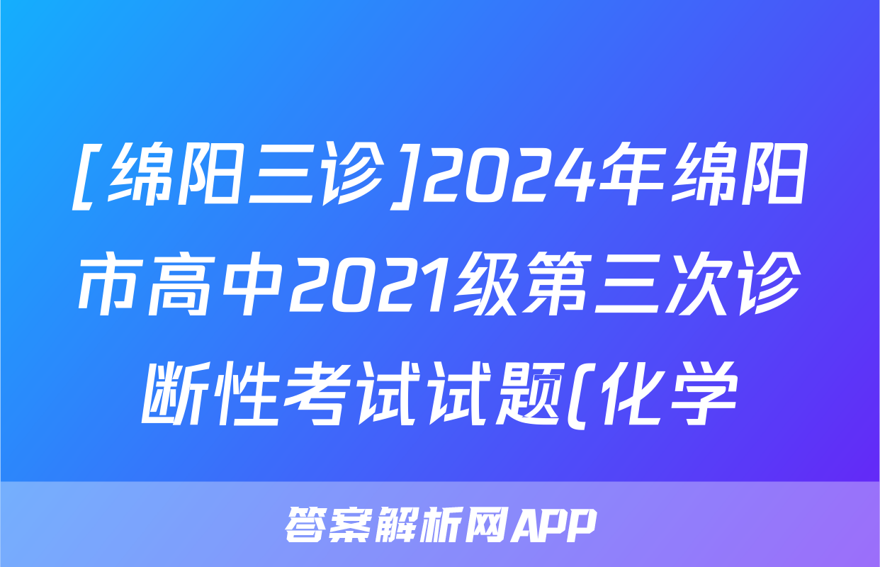 [绵阳三诊]2024年绵阳市高中2021级第三次诊断性考试试题(化学)正在持续更新,目前2026天舟高考答案网为大家整理了相关试题及答案,供大家查缺补漏,高效提升成绩。
