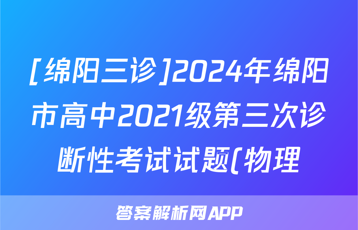 [绵阳三诊]2024年绵阳市高中2021级第三次诊断性考试试题(物理)正在持续更新,目前2026天舟高考答案网为大家整理了相关试题及答案,供大家查缺补漏,高效提升成绩。