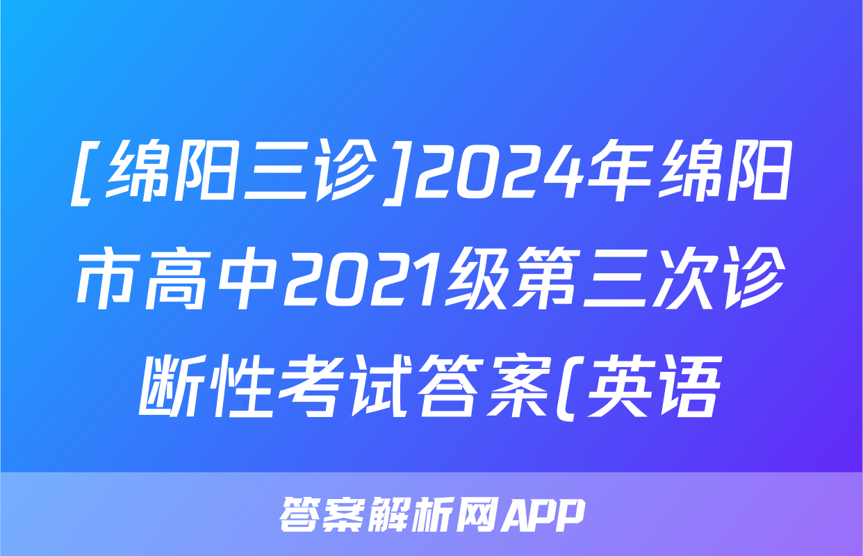 [绵阳三诊]2024年绵阳市高中2021级第三次诊断性考试答案(英语)正在持续更新,目前2026天舟高考答案网为大家整理了相关试题及答案,供大家查缺补漏,高效提升成绩。