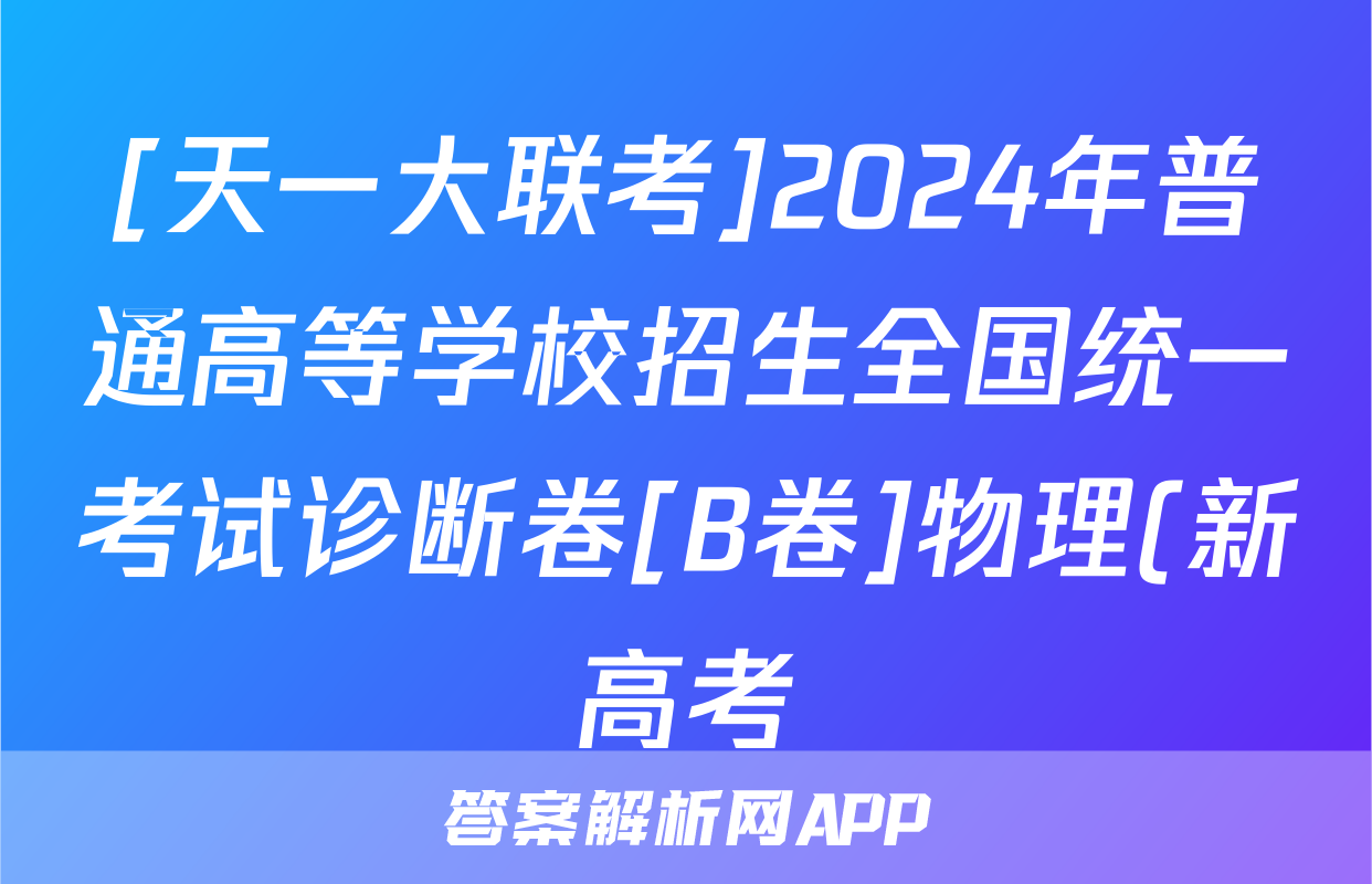 [天一大联考]2024年普通高等学校招生全国统一考试诊断卷[B卷]物理(新高考)试题正在持续更新,目前2026天舟高考答案网为大家整理了相关试题及答案,供大家查缺补漏,高效提升成绩。
