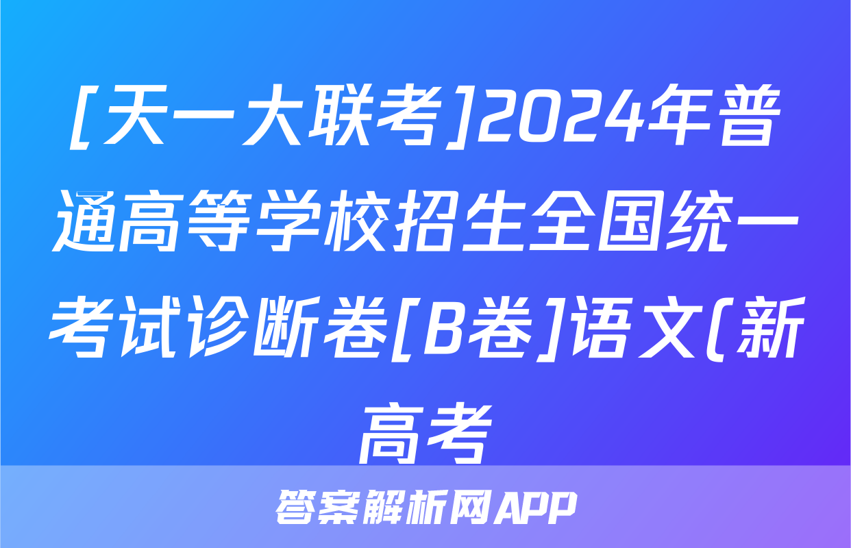 [天一大联考]2024年普通高等学校招生全国统一考试诊断卷[B卷]语文(新高考)试题正在持续更新,目前2026天舟高考答案网为大家整理了相关试题及答案,供大家查缺补漏,高效提升成绩。