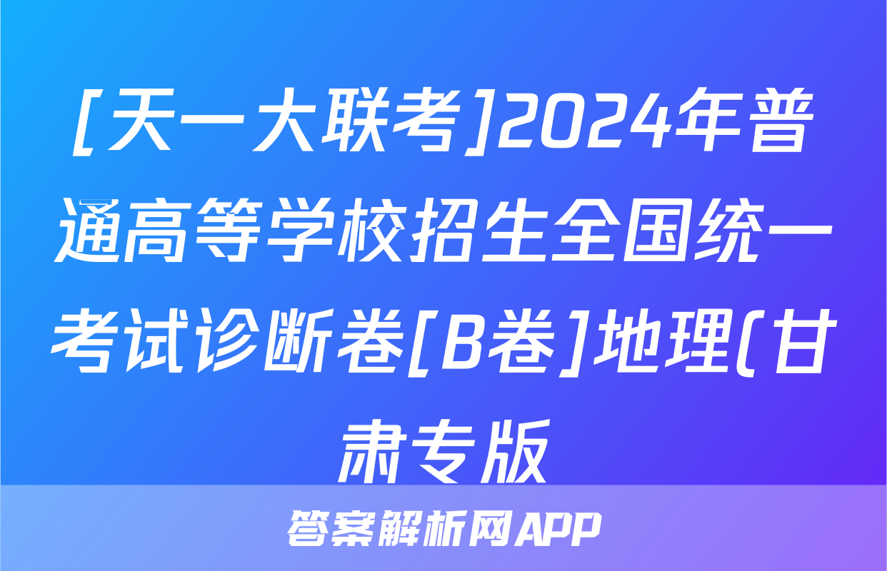 [天一大联考]2024年普通高等学校招生全国统一考试诊断卷[B卷]地理(甘肃专版)答案正在持续更新,目前2026天舟高考答案网为大家整理了相关试题及答案,供大家查缺补漏,高效提升成绩。