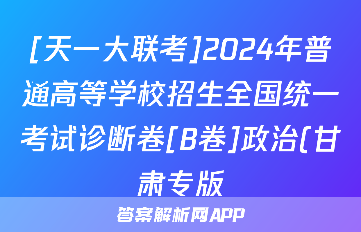 [天一大联考]2024年普通高等学校招生全国统一考试诊断卷[B卷]政治(甘肃专版)试题正在持续更新,目前2026天舟高考答案网为大家整理了相关试题及答案,供大家查缺补漏,高效提升成绩。
