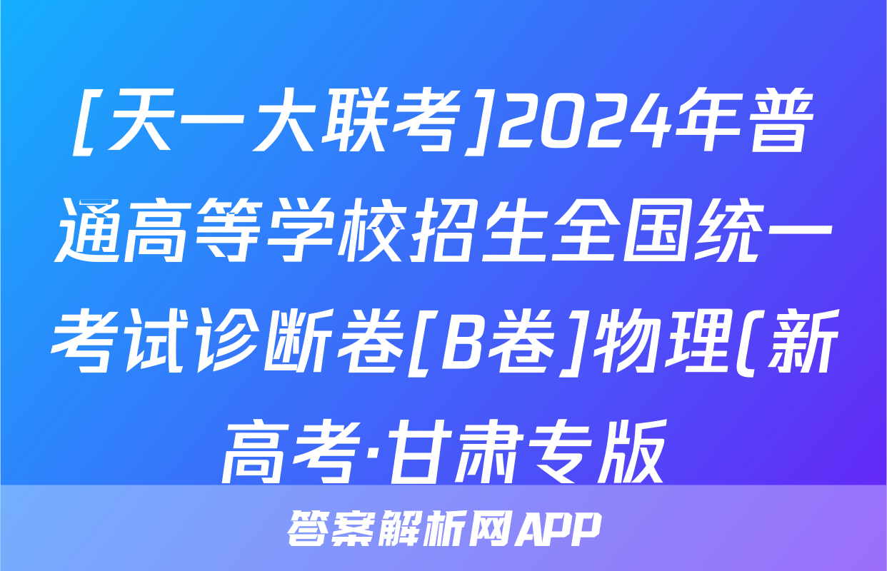 [天一大联考]2024年普通高等学校招生全国统一考试诊断卷[B卷]物理(新高考·甘肃专版)答案正在持续更新,目前2026天舟高考答案网为大家整理了相关试题及答案,供大家查缺补漏,高效提升成绩。