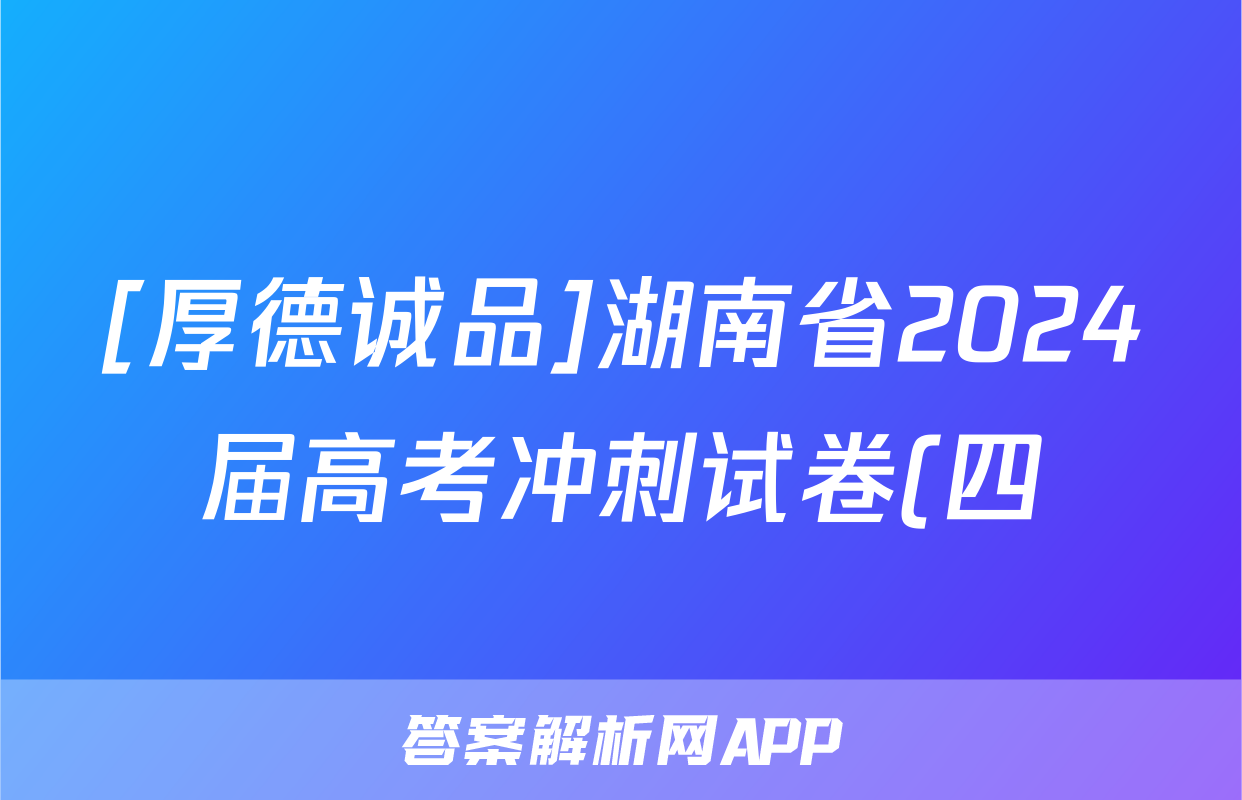 [厚德诚品]湖南省2024届高考冲刺试卷(四)4答案(历史)正在持续更新,目前2026天舟高考答案网为大家整理了相关试题及答案,供大家查缺补漏,高效提升成绩。