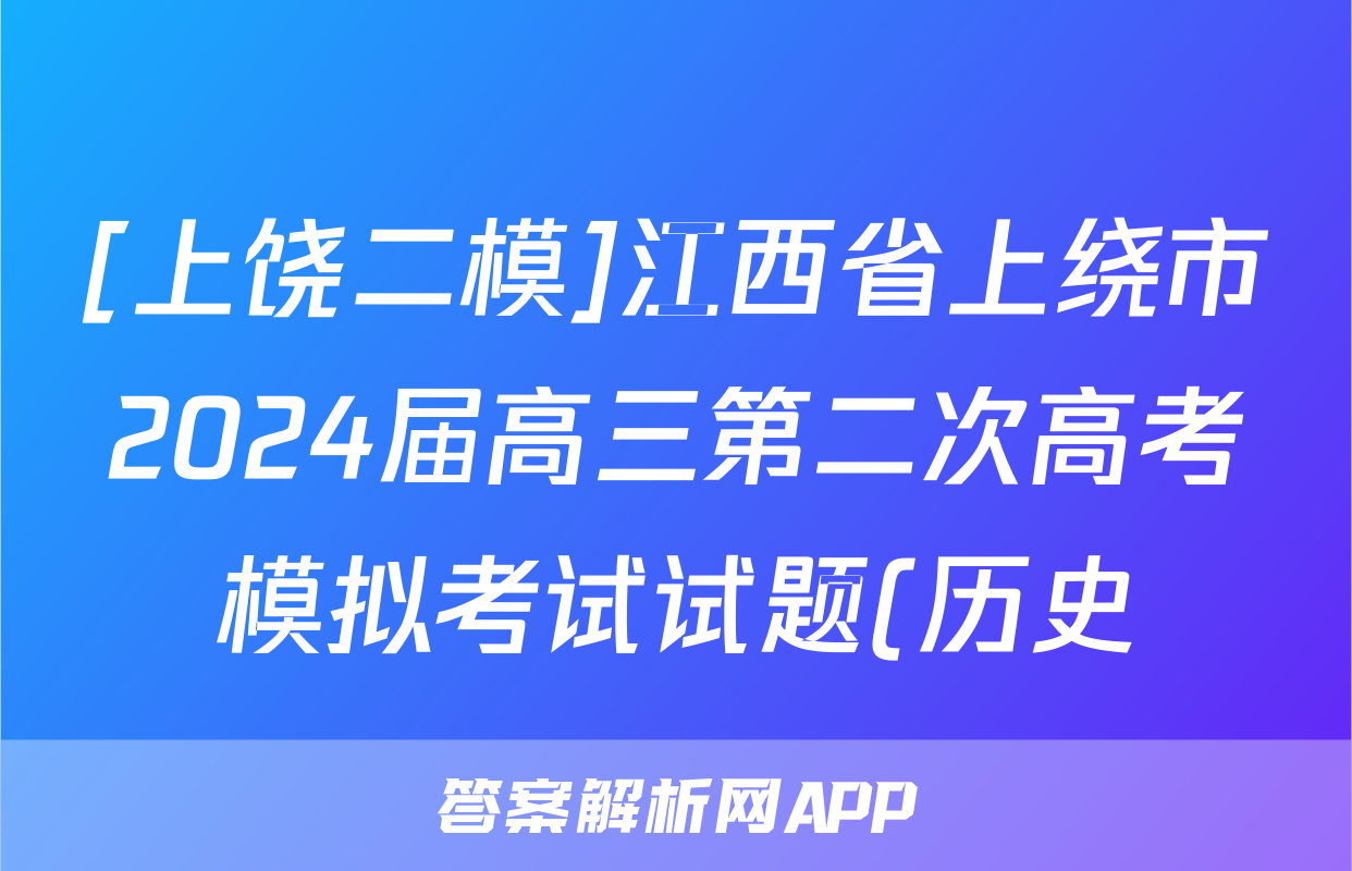 [上饶二模]江西省上绕市2024届高三第二次高考模拟考试试题(历史)正在持续更新,目前2026天舟高考答案网为大家整理了相关试题及答案,供大家查缺补漏,高效提升成绩。