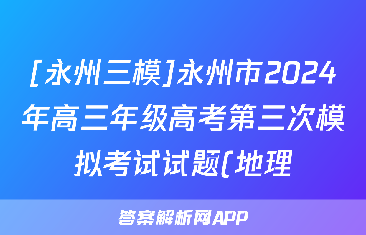 [永州三模]永州市2024年高三年级高考第三次模拟考试试题(地理)正在持续更新,目前2026天舟高考答案网为大家整理了相关试题及答案,供大家查缺补漏,高效提升成绩。