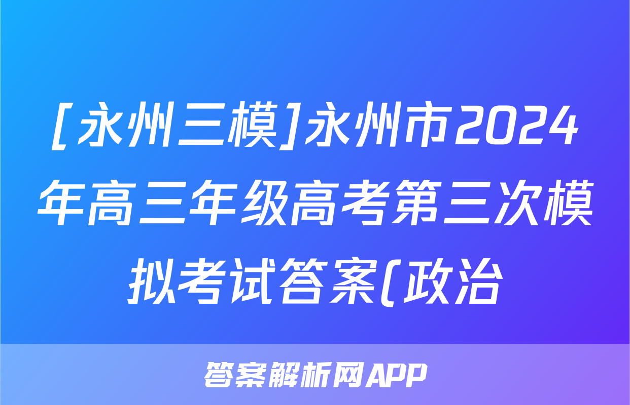 [永州三模]永州市2024年高三年级高考第三次模拟考试答案(政治)正在持续更新,目前2026天舟高考答案网为大家整理了相关试题及答案,供大家查缺补漏,高效提升成绩。