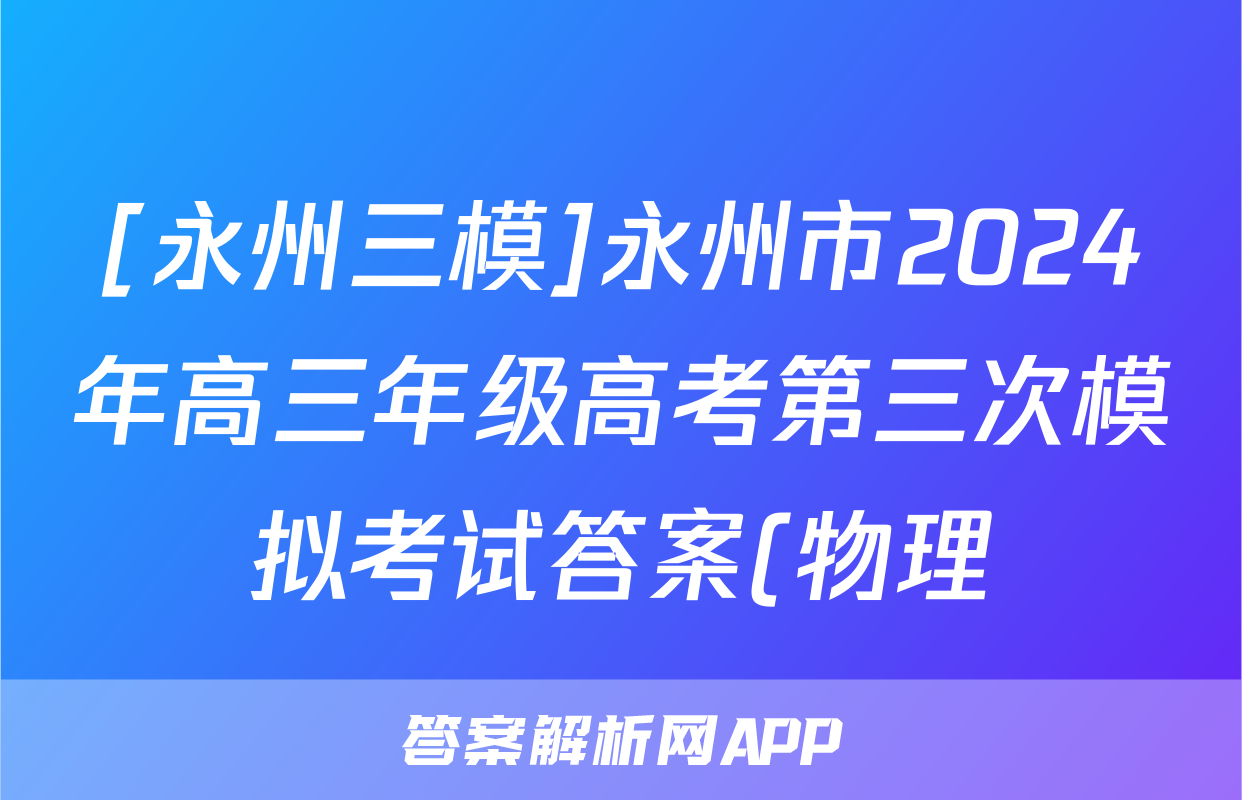 [永州三模]永州市2024年高三年级高考第三次模拟考试答案(物理)正在持续更新,目前2026天舟高考答案网为大家整理了相关试题及答案,供大家查缺补漏,高效提升成绩。