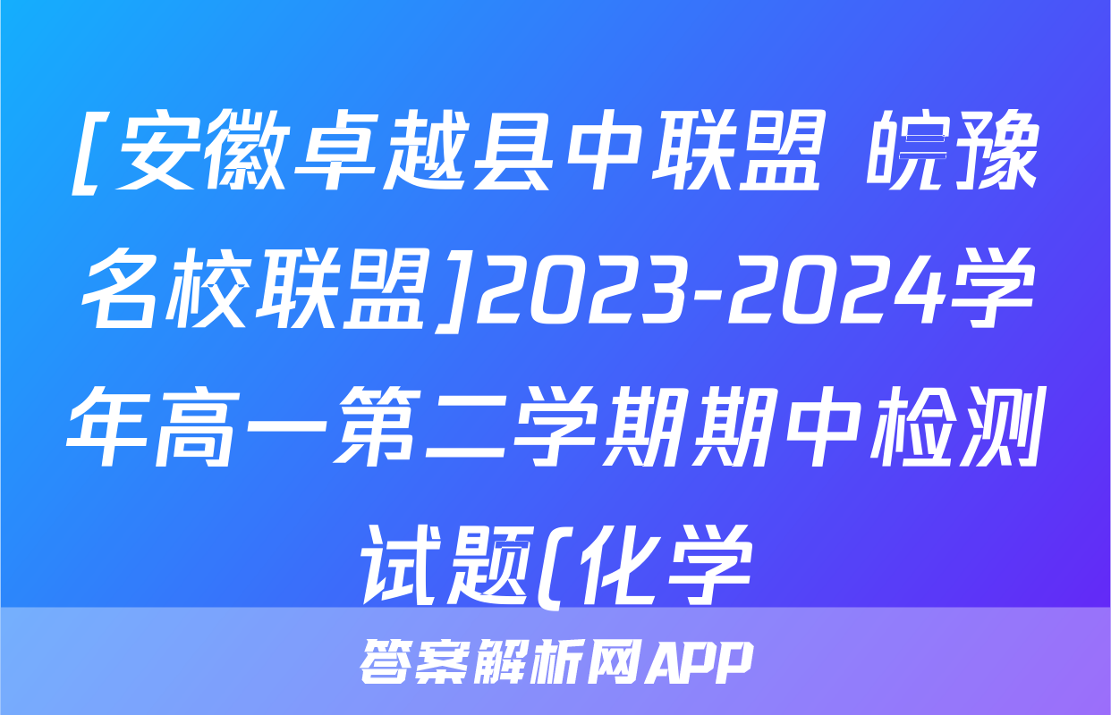 [安徽卓越县中联盟 皖豫名校联盟]2023-2024学年高一第二学期期中检测试题(化学)正在持续更新,目前2026天舟高考答案网为大家整理了相关试题及答案,供大家查缺补漏,高效提升成绩。
