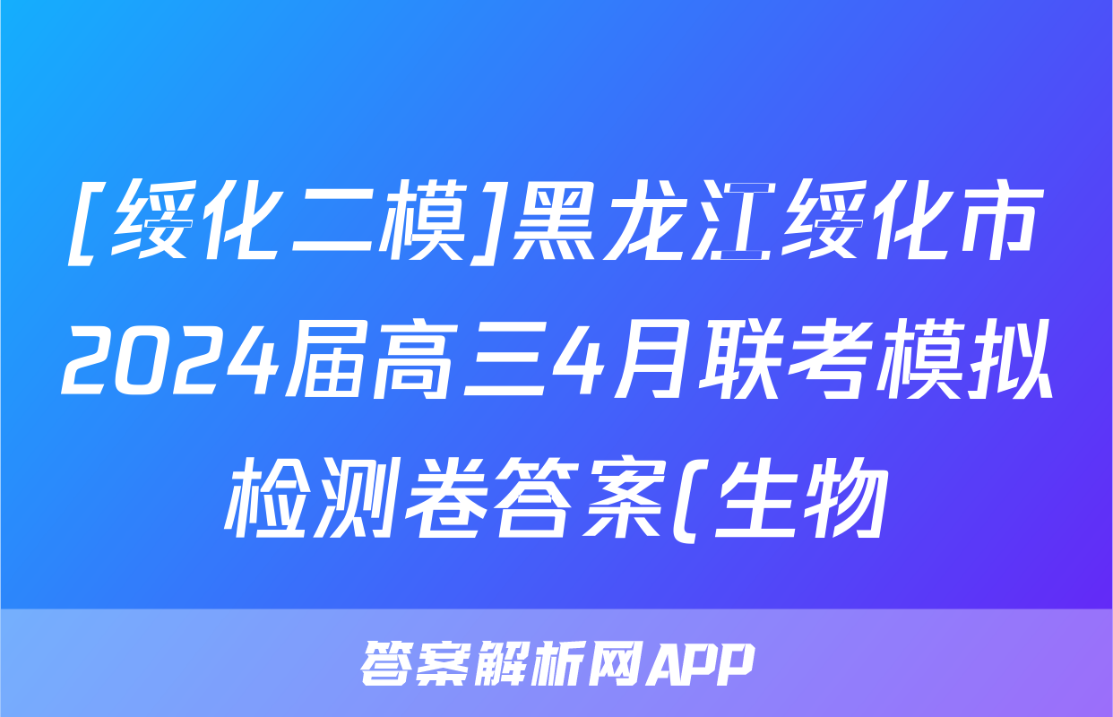 [绥化二模]黑龙江绥化市2024届高三4月联考模拟检测卷答案(生物)正在持续更新,目前2026天舟高考答案网为大家整理了相关试题及答案,供大家查缺补漏,高效提升成绩。