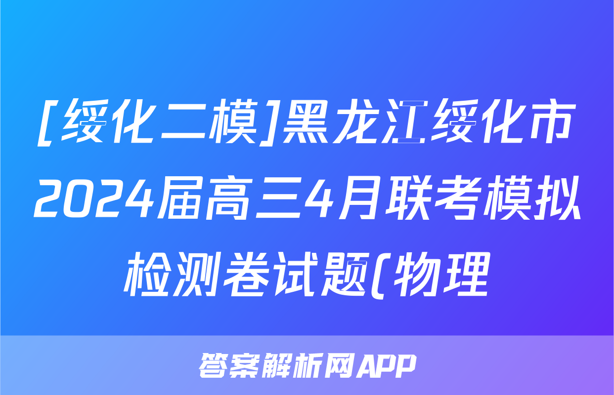 [绥化二模]黑龙江绥化市2024届高三4月联考模拟检测卷试题(物理)正在持续更新,目前2026天舟高考答案网为大家整理了相关试题及答案,供大家查缺补漏,高效提升成绩。