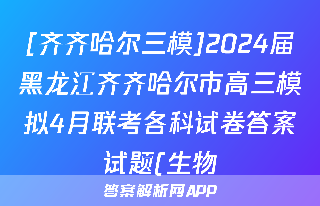 [齐齐哈尔三模]2024届黑龙江齐齐哈尔市高三模拟4月联考各科试卷答案试题(生物)正在持续更新,目前2026天舟高考答案网为大家整理了相关试题及答案,供大家查缺补漏,高效提升成绩。