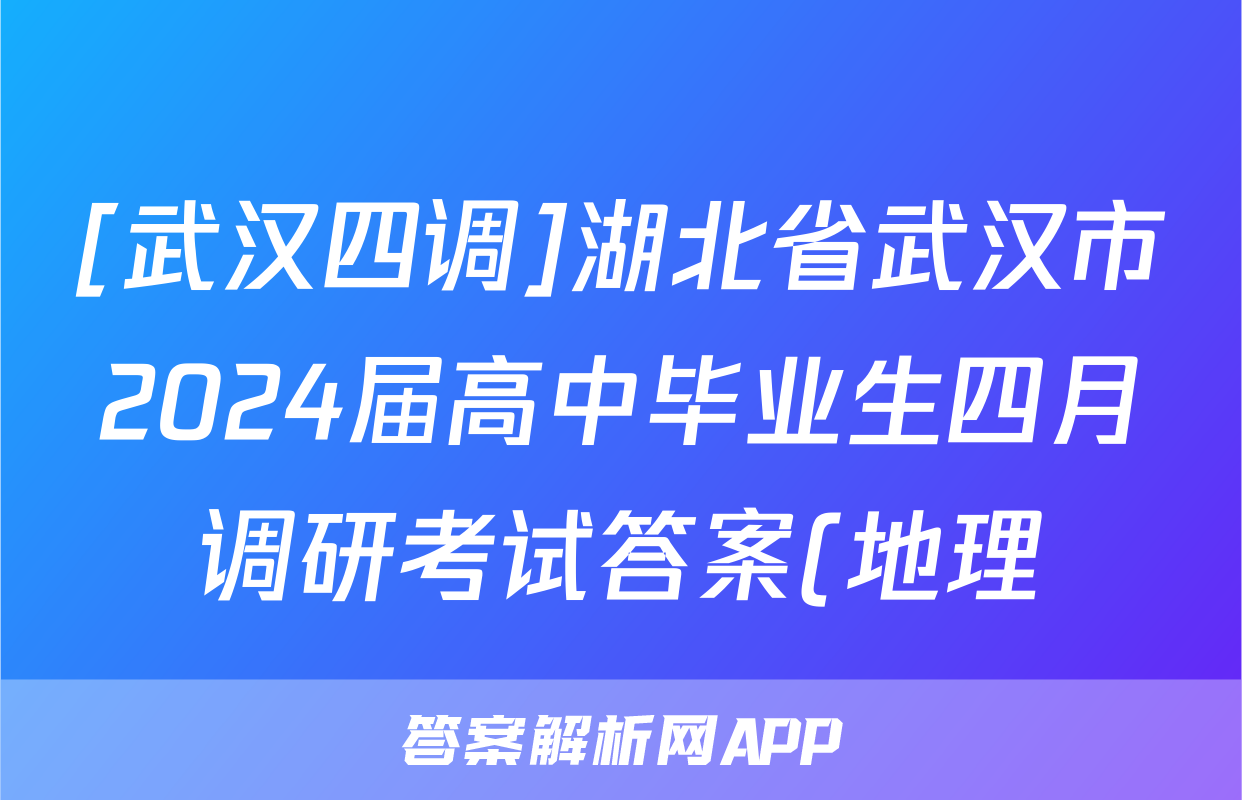 [武汉四调]湖北省武汉市2024届高中毕业生四月调研考试答案(地理)正在持续更新,目前2026天舟高考答案网为大家整理了相关试题及答案,供大家查缺补漏,高效提升成绩。