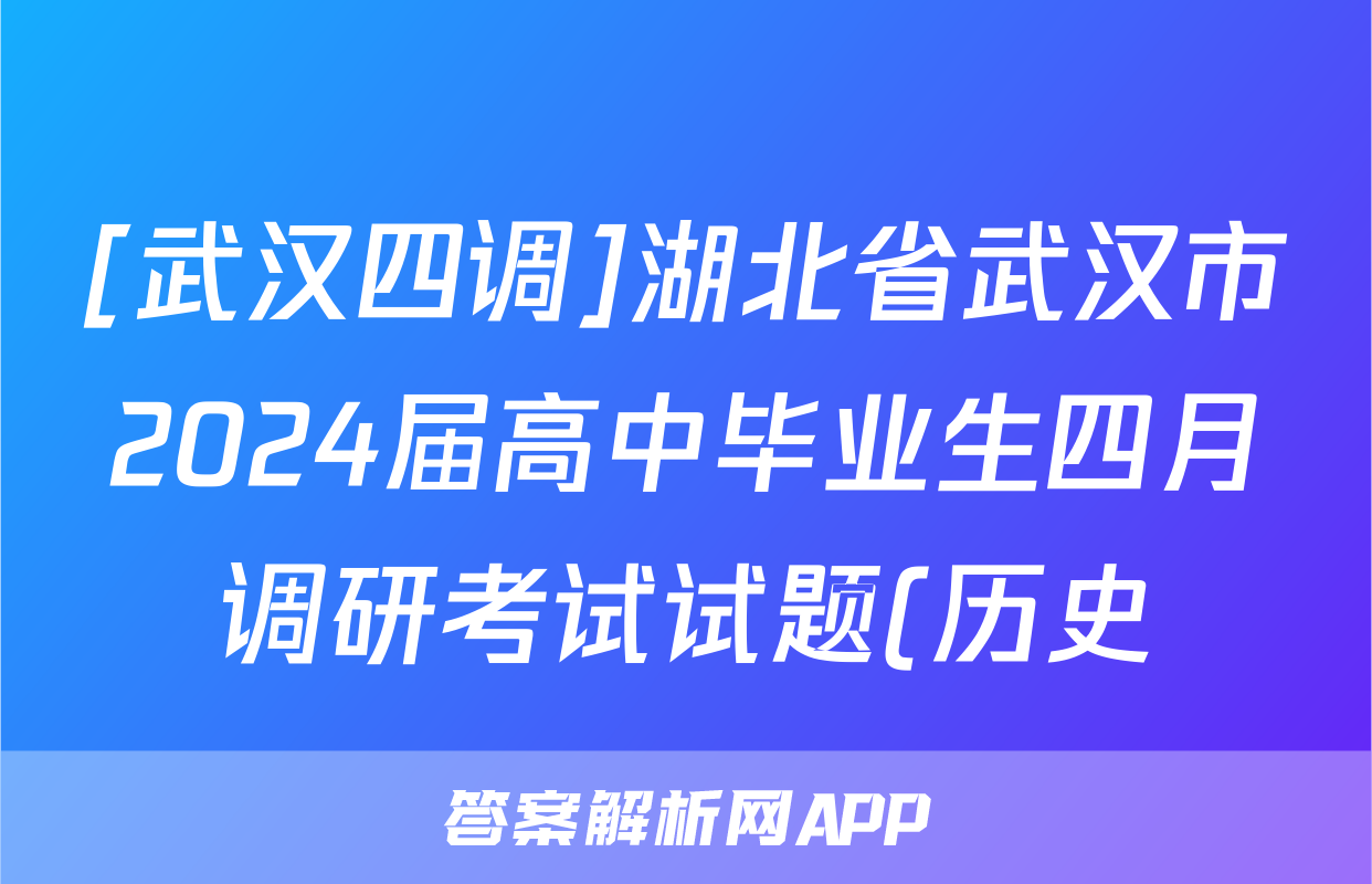 [武汉四调]湖北省武汉市2024届高中毕业生四月调研考试试题(历史)正在持续更新,目前2026天舟高考答案网为大家整理了相关试题及答案,供大家查缺补漏,高效提升成绩。