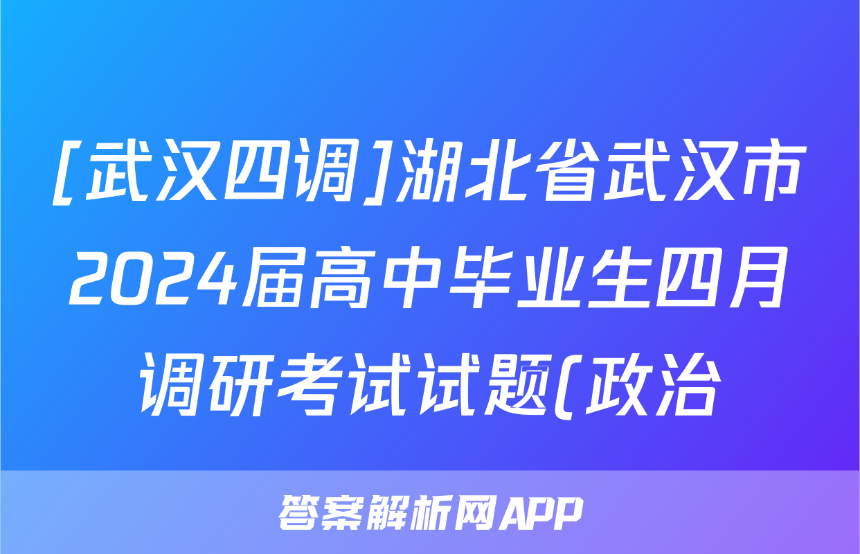 [武汉四调]湖北省武汉市2024届高中毕业生四月调研考试试题(政治)正在持续更新,目前2026天舟高考答案网为大家整理了相关试题及答案,供大家查缺补漏,高效提升成绩。