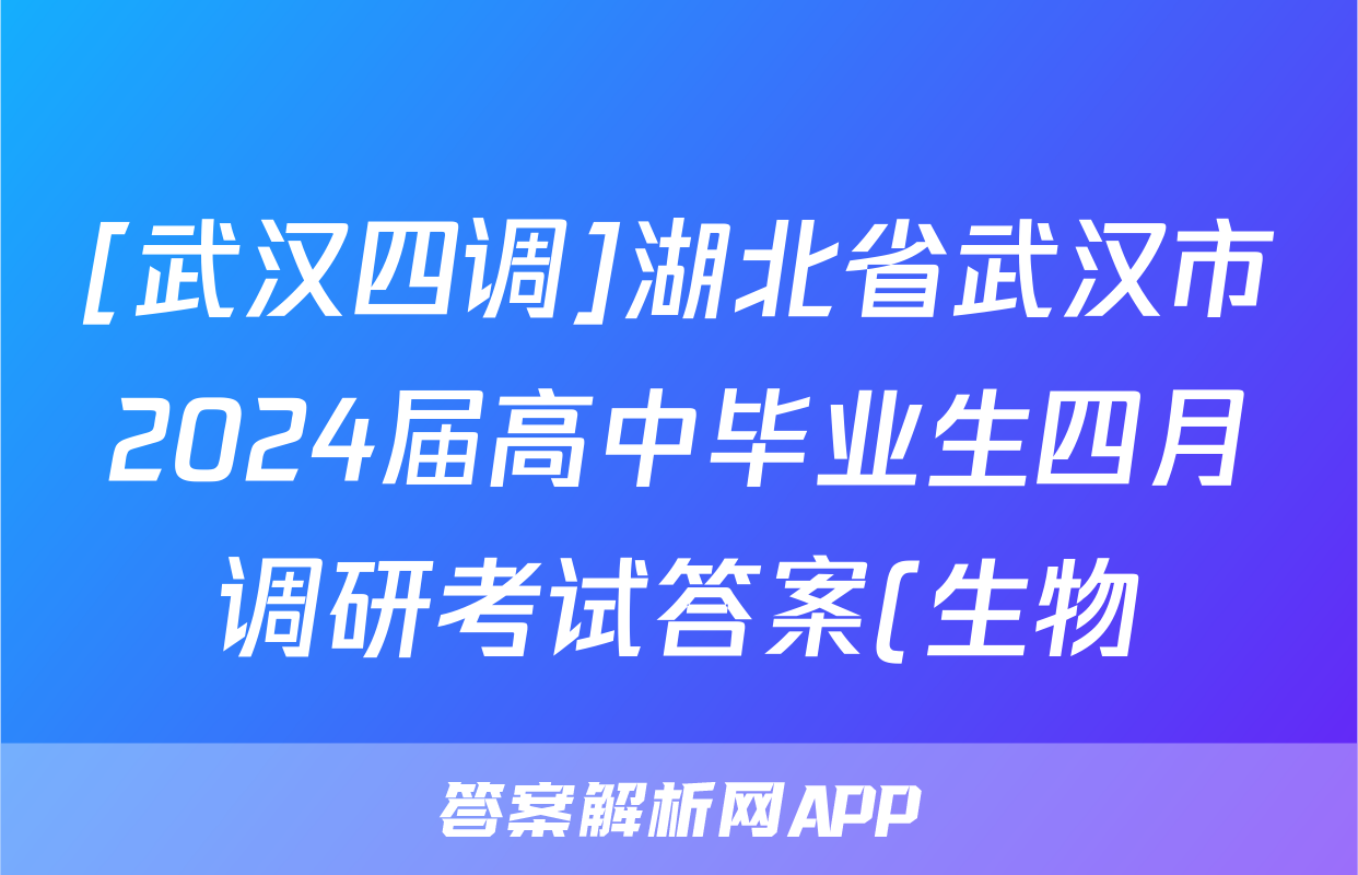 [武汉四调]湖北省武汉市2024届高中毕业生四月调研考试答案(生物)正在持续更新,目前2026天舟高考答案网为大家整理了相关试题及答案,供大家查缺补漏,高效提升成绩。