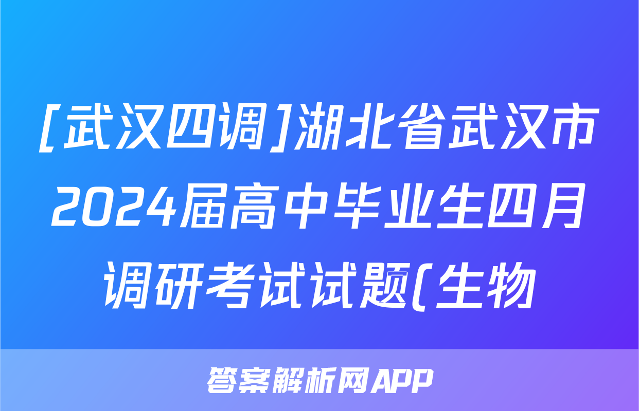 [武汉四调]湖北省武汉市2024届高中毕业生四月调研考试试题(生物)正在持续更新,目前2026天舟高考答案网为大家整理了相关试题及答案,供大家查缺补漏,高效提升成绩。