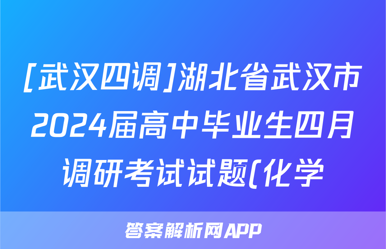 [武汉四调]湖北省武汉市2024届高中毕业生四月调研考试试题(化学)正在持续更新,目前2026天舟高考答案网为大家整理了相关试题及答案,供大家查缺补漏,高效提升成绩。