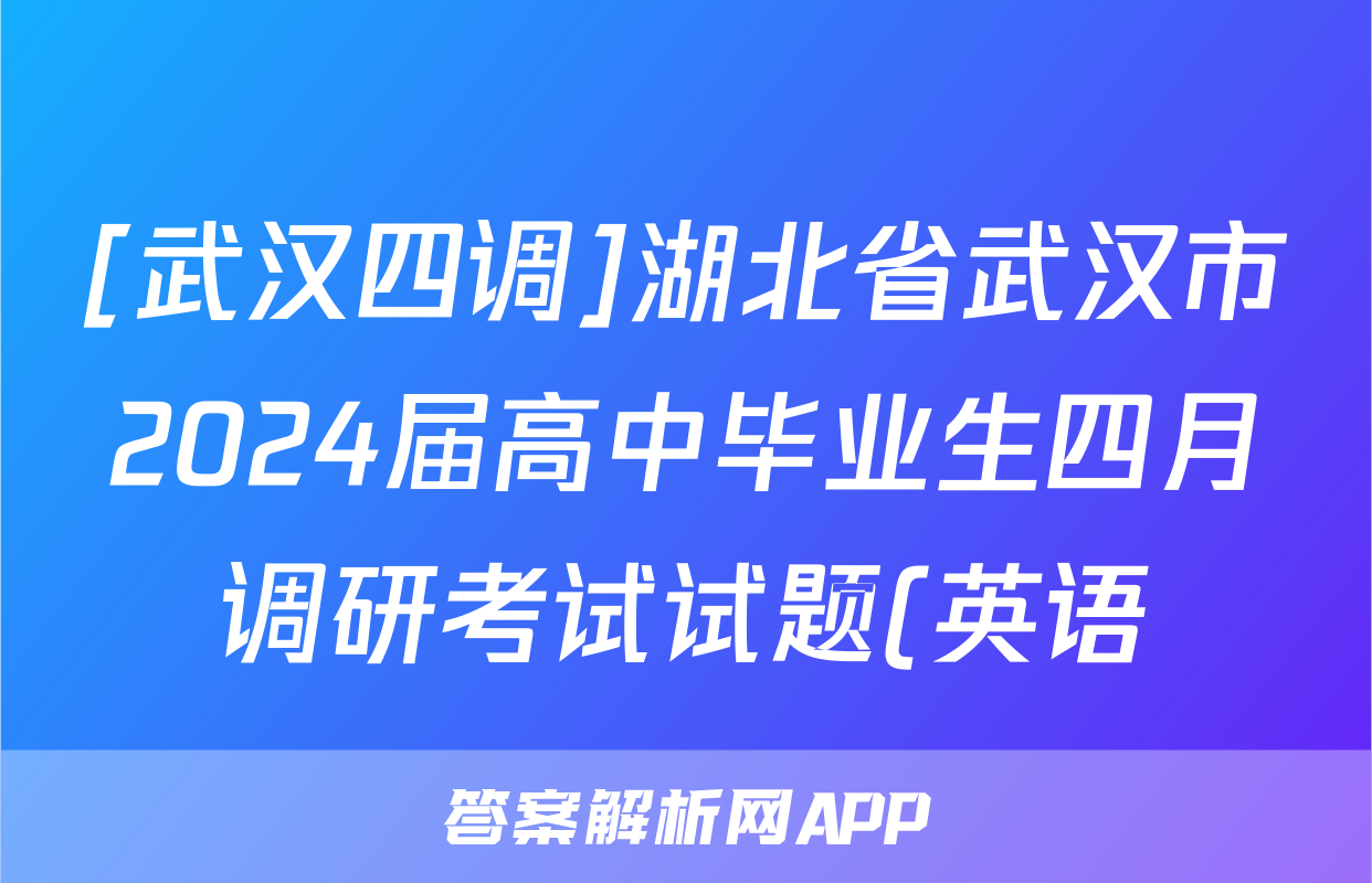 [武汉四调]湖北省武汉市2024届高中毕业生四月调研考试试题(英语)正在持续更新,目前2026天舟高考答案网为大家整理了相关试题及答案,供大家查缺补漏,高效提升成绩。