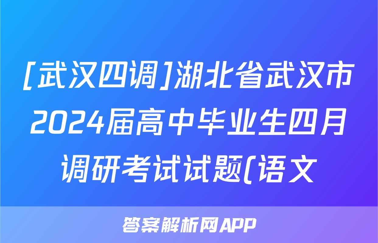 [武汉四调]湖北省武汉市2024届高中毕业生四月调研考试试题(语文)正在持续更新,目前2026天舟高考答案网为大家整理了相关试题及答案,供大家查缺补漏,高效提升成绩。
