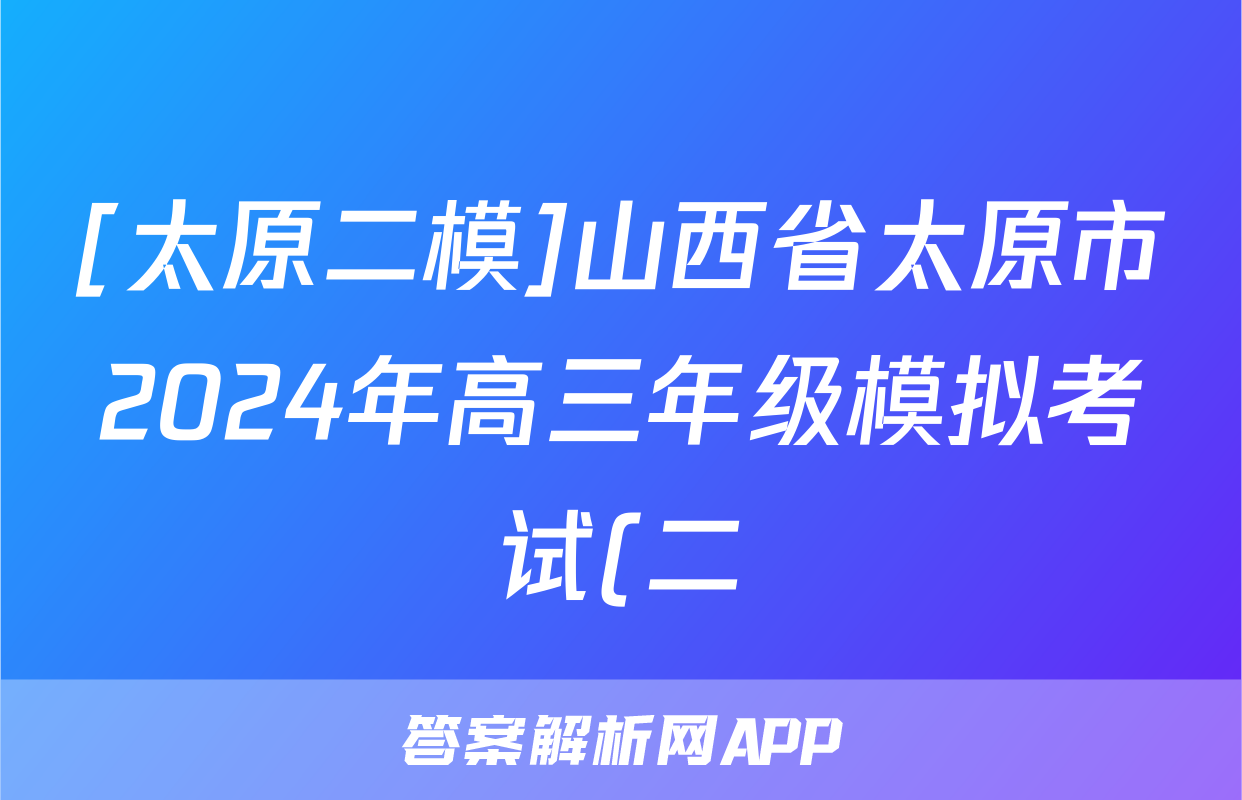 [太原二模]山西省太原市2024年高三年级模拟考试(二)2答案(语文)正在持续更新,目前2026天舟高考答案网为大家整理了相关试题及答案,供大家查缺补漏,高效提升成绩。