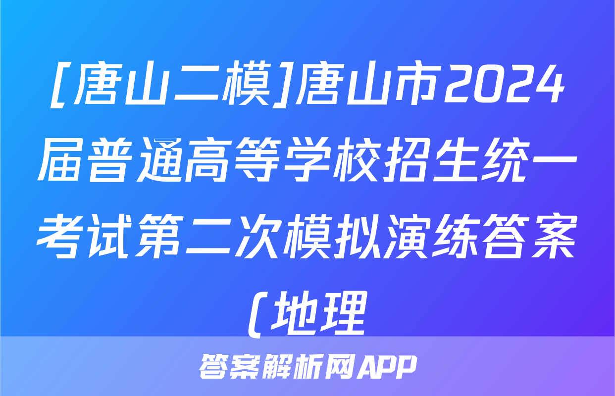 [唐山二模]唐山市2024届普通高等学校招生统一考试第二次模拟演练答案(地理)正在持续更新,目前2026天舟高考答案网为大家整理了相关试题及答案,供大家查缺补漏,高效提升成绩。