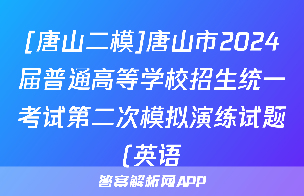 [唐山二模]唐山市2024届普通高等学校招生统一考试第二次模拟演练试题(英语)正在持续更新,目前2026天舟高考答案网为大家整理了相关试题及答案,供大家查缺补漏,高效提升成绩。