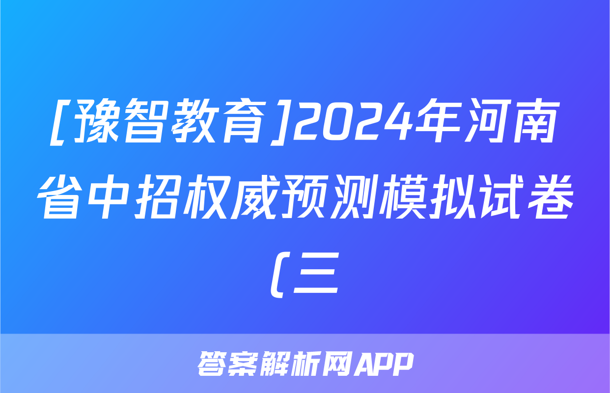 [豫智教育]2024年河南省中招权威预测模拟试卷(三)3语文试题正在持续更新,目前2026天舟高考答案网为大家整理了相关试题及答案,供大家查缺补漏,高效提升成绩。