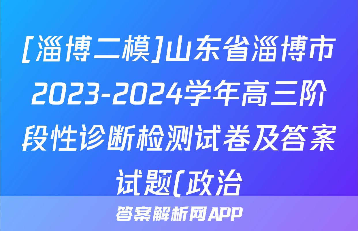 [淄博二模]山东省淄博市2023-2024学年高三阶段性诊断检测试卷及答案试题(政治)正在持续更新,目前2026天舟高考答案网为大家整理了相关试题及答案,供大家查缺补漏,高效提升成绩。