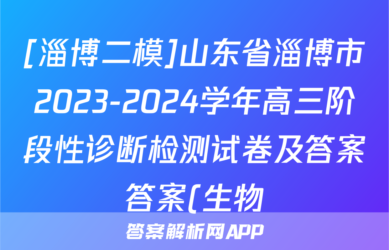 [淄博二模]山东省淄博市2023-2024学年高三阶段性诊断检测试卷及答案答案(生物)正在持续更新,目前2026天舟高考答案网为大家整理了相关试题及答案,供大家查缺补漏,高效提升成绩。