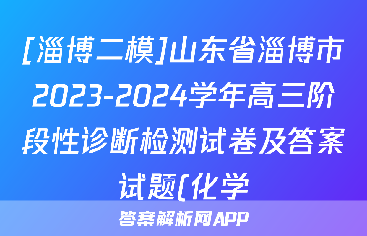 [淄博二模]山东省淄博市2023-2024学年高三阶段性诊断检测试卷及答案试题(化学)正在持续更新,目前2026天舟高考答案网为大家整理了相关试题及答案,供大家查缺补漏,高效提升成绩。