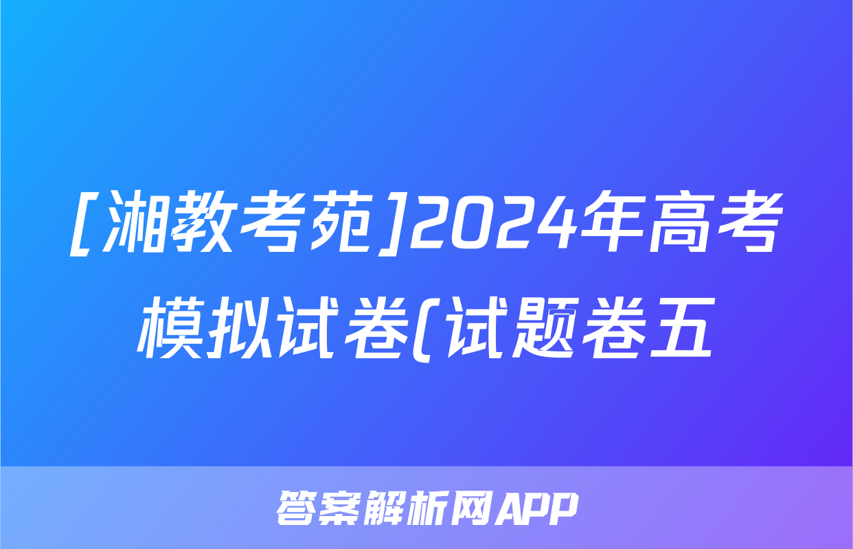 [湘教考苑]2024年高考模拟试卷(试题卷五)答案(化学)正在持续更新,目前2026天舟高考答案网为大家整理了相关试题及答案,供大家查缺补漏,高效提升成绩。
