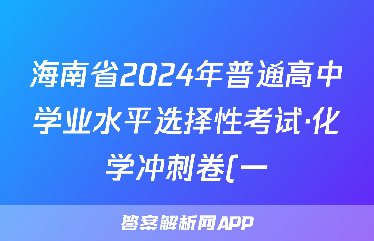 海南省2024年普通高中学业水平选择性考试·化学冲刺卷(一)1[24·(新高考)CCJ·化学·HAIN]答案正在持续更新,目前2026天舟高考答案网为大家整理了相关试题及答案,供大家查缺补漏,高效提升成绩。