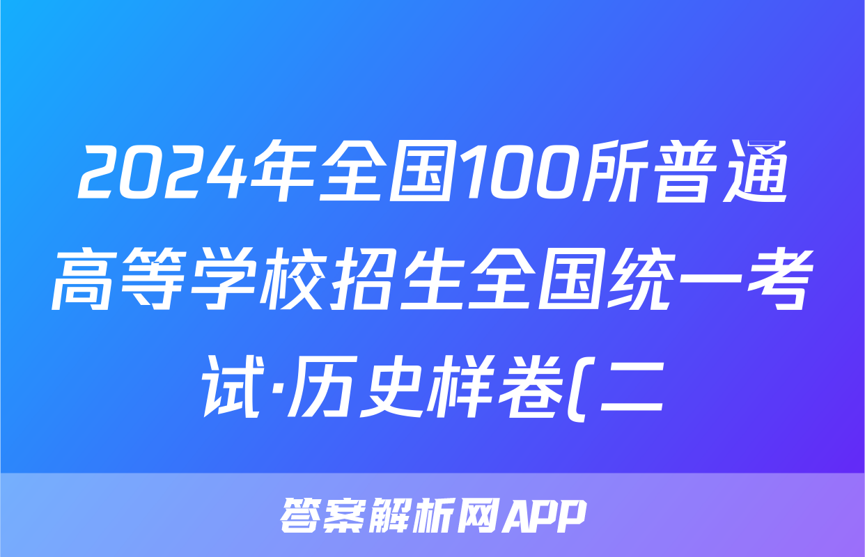 2024年全国100所普通高等学校招生全国统一考试·历史样卷(二)2[24·(新高考)高考样卷·历史·Y]答案正在持续更新,目前2026天舟高考答案网为大家整理了相关试题及答案,供大家查缺补漏,高效提升成绩。
