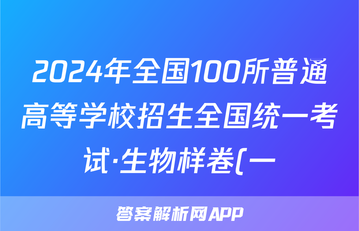 2024年全国100所普通高等学校招生全国统一考试·生物样卷(一)1[24·(新高考)高考样卷·生物·Y]答案正在持续更新,目前2026天舟高考答案网为大家整理了相关试题及答案,供大家查缺补漏,高效提升成绩。