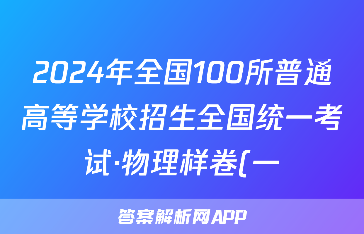 2024年全国100所普通高等学校招生全国统一考试·物理样卷(一)1[24·(新高考)高考样卷·物理·Y]答案正在持续更新,目前2026天舟高考答案网为大家整理了相关试题及答案,供大家查缺补漏,高效提升成绩。